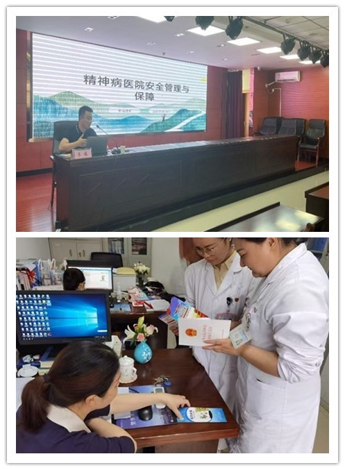 医院常态化开展法律法规、国家安全、禁毒反邪、扫黑除恶、防诈防盗、安全生产及应急处置等知识的宣传教育。联合投诉管理办公室举办法律培训,特邀法律顾问围绕《常见医师执业违法行为及相关案例分析》《精神病医院安全管理与保障》等主题授课,有效提升了医务人员的风险防范意识和法律素养,为持续改进医疗质量、保障医患权益、促进医患和谐奠定了坚实基础。