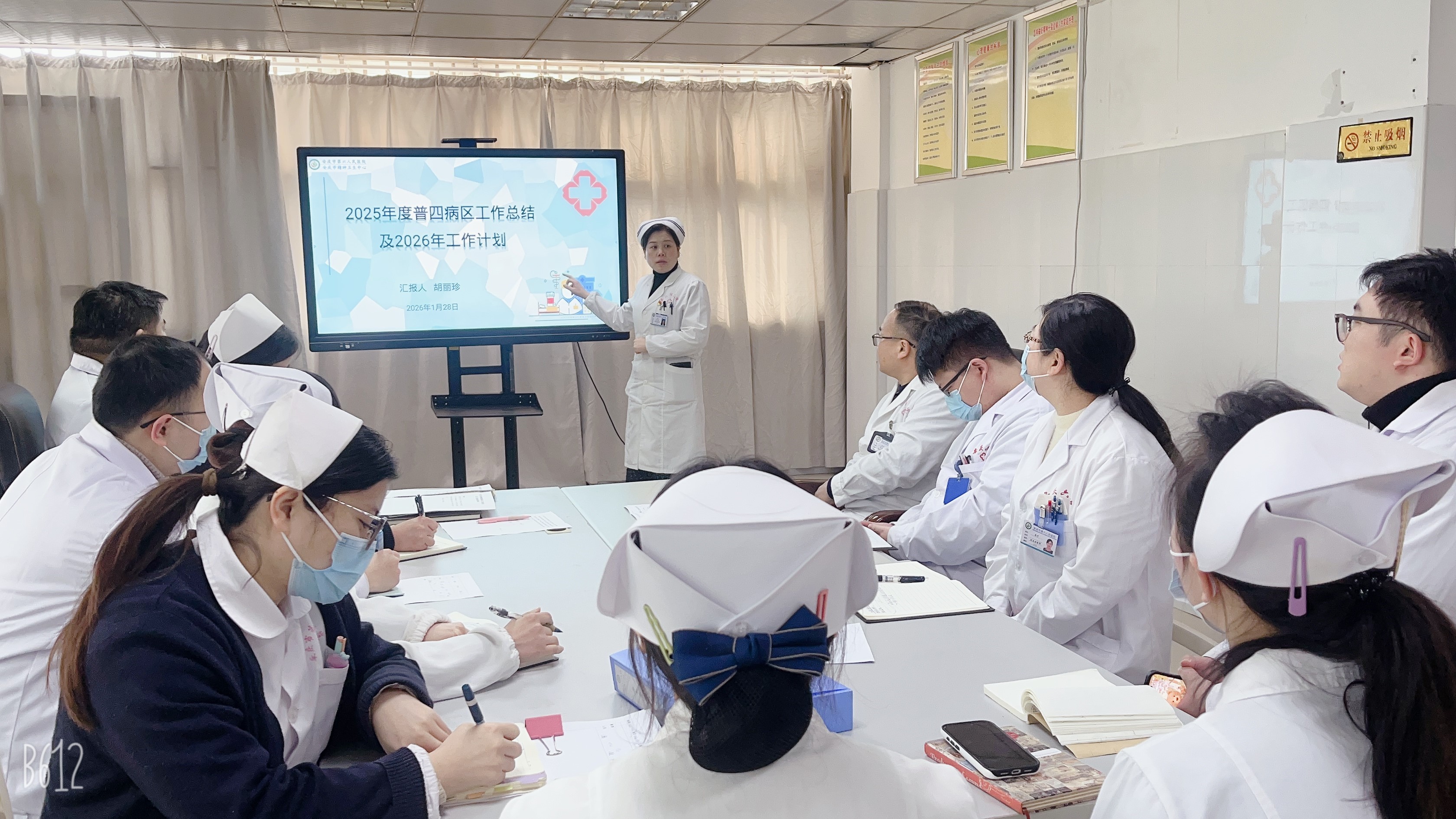 为系统回顾过去一年工作成果,科学谋划新发展阶段目标任务, 1月28日,普四病区组织召开2025年度工作总结暨2026年工作规划会议。本次会议由护士长胡丽珍主持,病区全体医务人员参加。