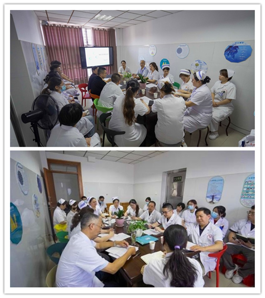 当日下午,针对该患者的多重挑战,普七病区在医务科高效协调下,精心组织了一场汇集院内顶尖专家并特邀外院权威的MDT多学科联合诊疗。会议特别邀请安庆市立医院全科医学科殷晓明主任医师、神经内科胡艳兵副主任医师莅临指导。本院院长欧阳泽祥、医务科科长方薇、护理部主任方云、老年精神科主任赵勇主任、普七病区副主任医师杨平乐(主管团队),护士长朱萍和胡丽珍等悉数到场。