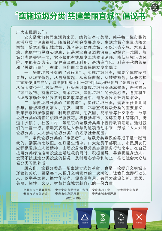 “实施垃圾分类 共建美丽宜城”倡议书