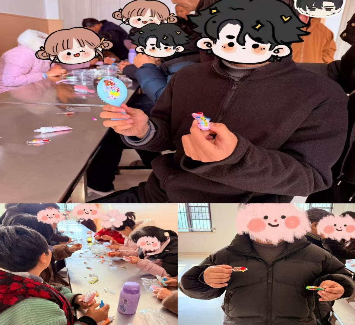创作过程中,大家充分发挥想象力,手持奶油胶细致勾勒,用心粘贴每一处配饰。一朵朵灵动的小花、一个个呆萌的动物造型、一颗颗闪亮的水钻,在患者的巧手下逐渐组合成独一无二的作品。有的注重色彩和谐,追求视觉美感;有的敢于个性混搭,展现独特创意。医护人员全程陪伴,在提供必要协助的同时,与患者亲切交流,倾听他们的感受与想法,在互动中进一步拉近了彼此的距离。