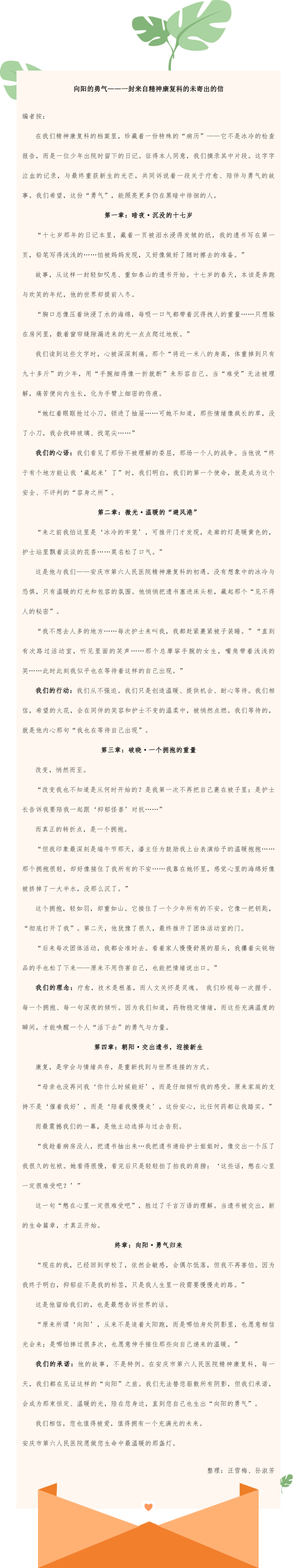 向阳的勇气——一封来自精神康复科的未寄出的信
