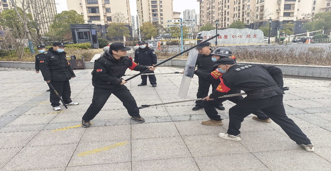 演练模拟了医院门诊突发暴力滋事、持械威胁等场景,按照“一键报警”及“1分钟快速响应、3分钟有效处置、5分钟妥善收尾”的原则有序展开。现场安保人员闻令即动,迅速穿戴防护装备,使用钢叉、盾牌等器材形成防护阵型,果断稳妥控制“危险人员”,同时引导周边群众疏散避险。全程动作规范、分工明确、配合默契,达到了以演促练、以练备战的预期效果。